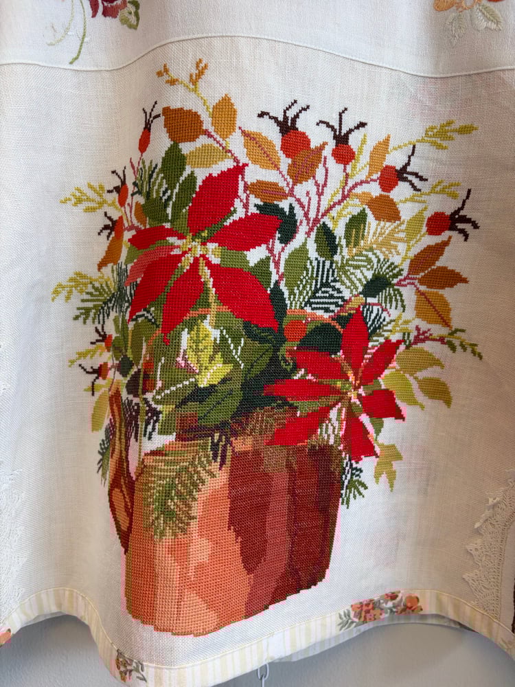 A gathering of amazing embroideries and needle point.