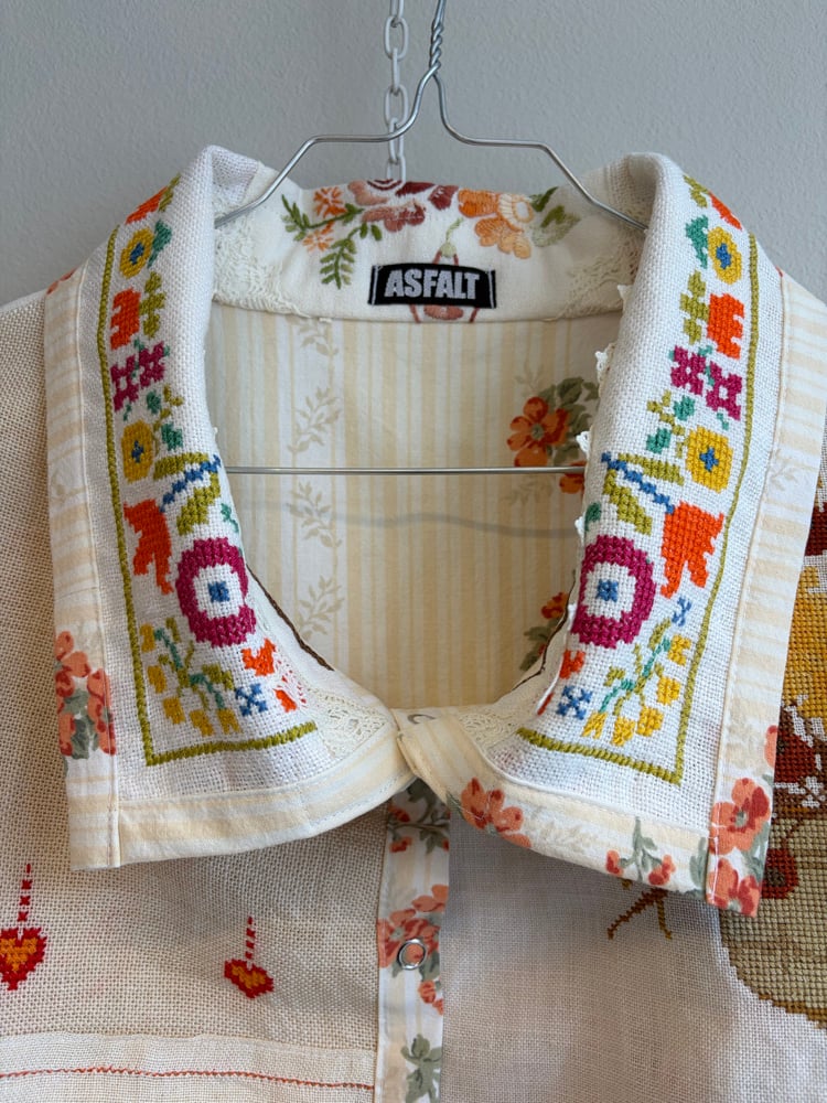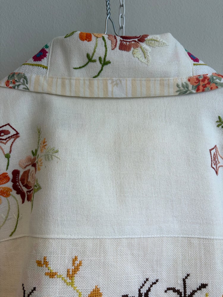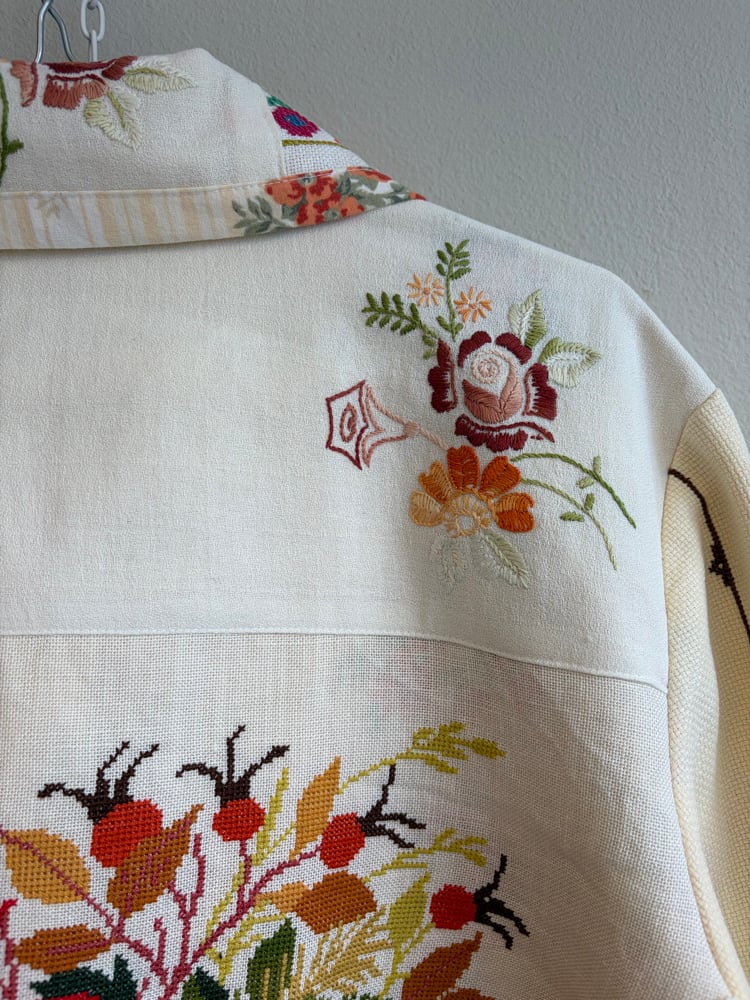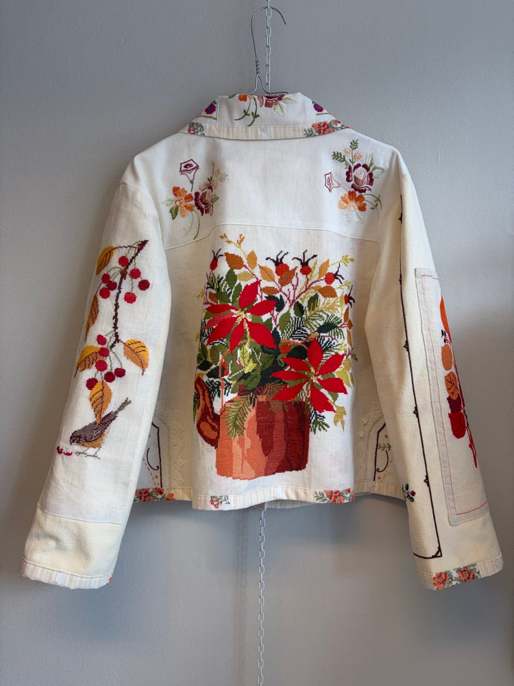 All needle points and embroideries have been test washed, so the jacket can be mashine washed on delicate program or hand washed.