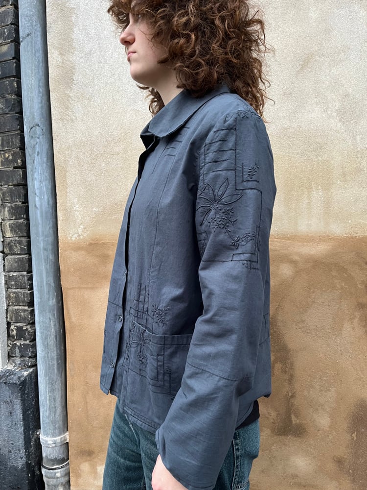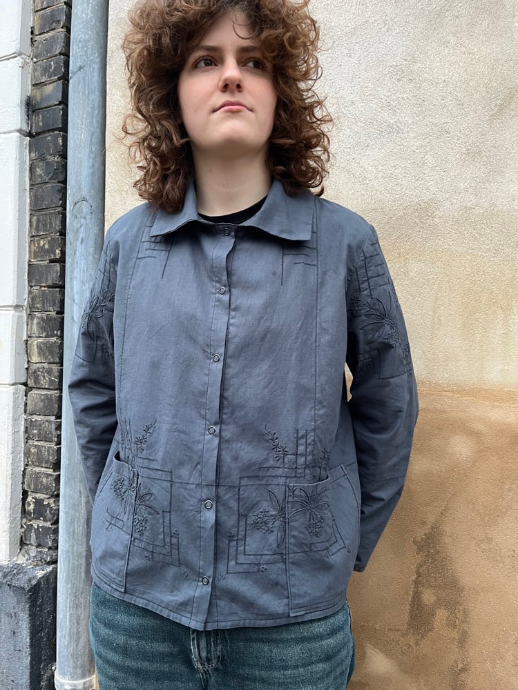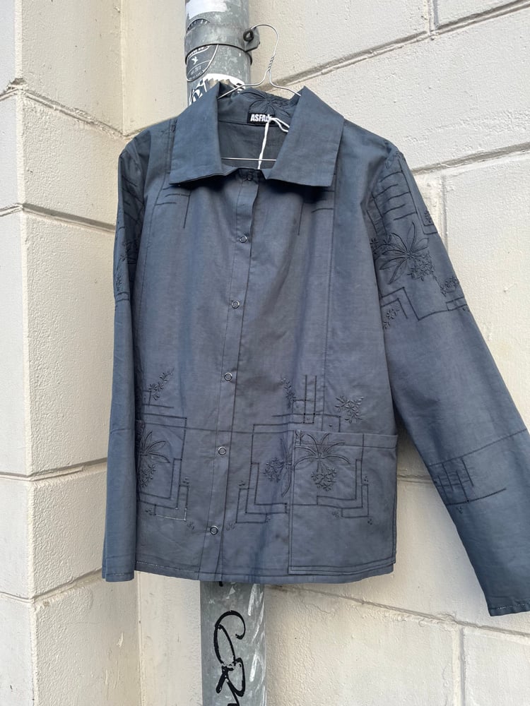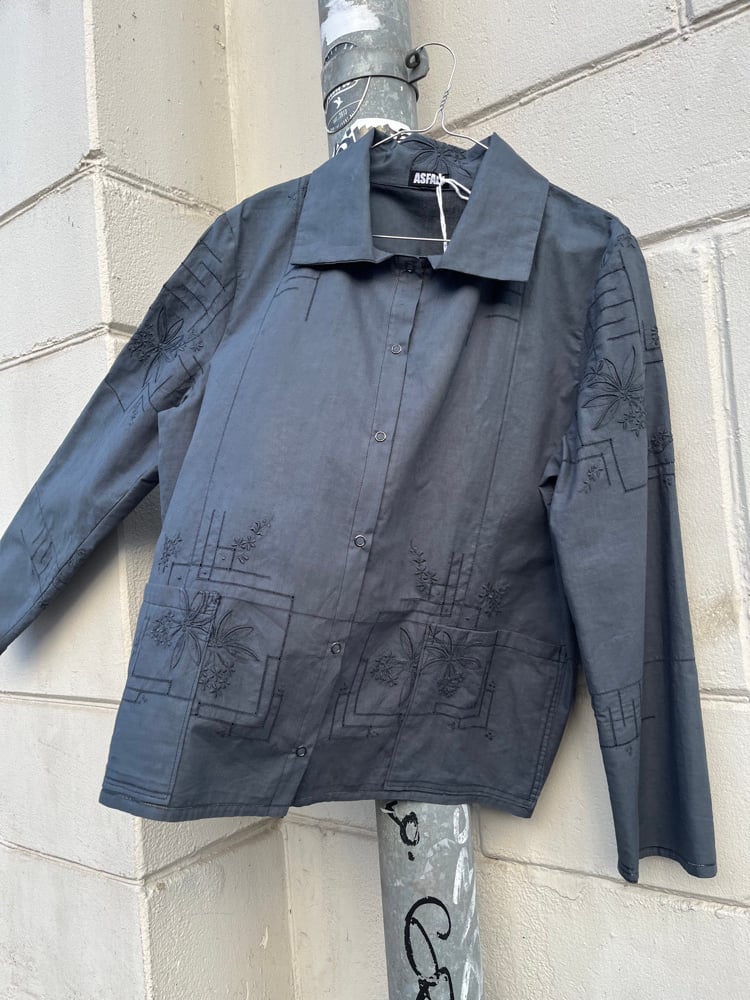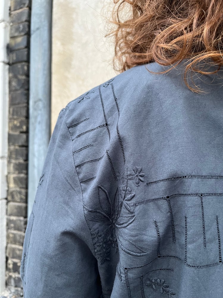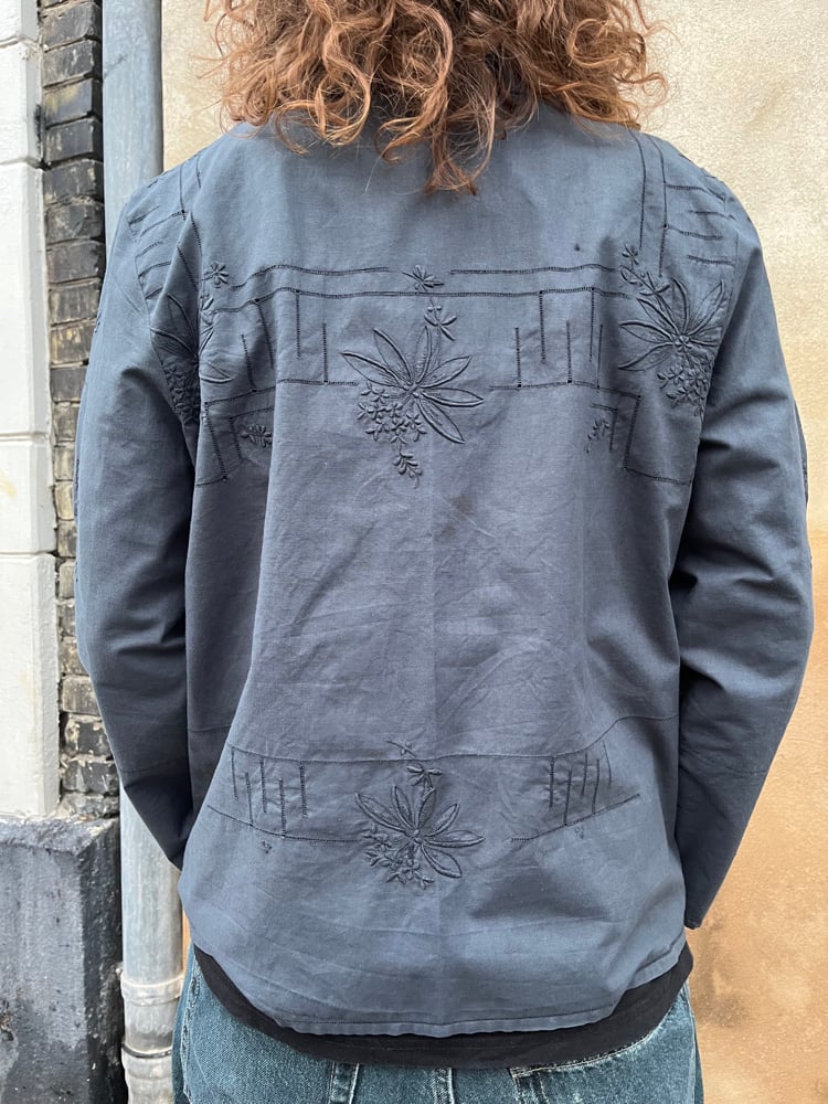 Skjorte syet af smuk broderet dug, indfarvet sort.