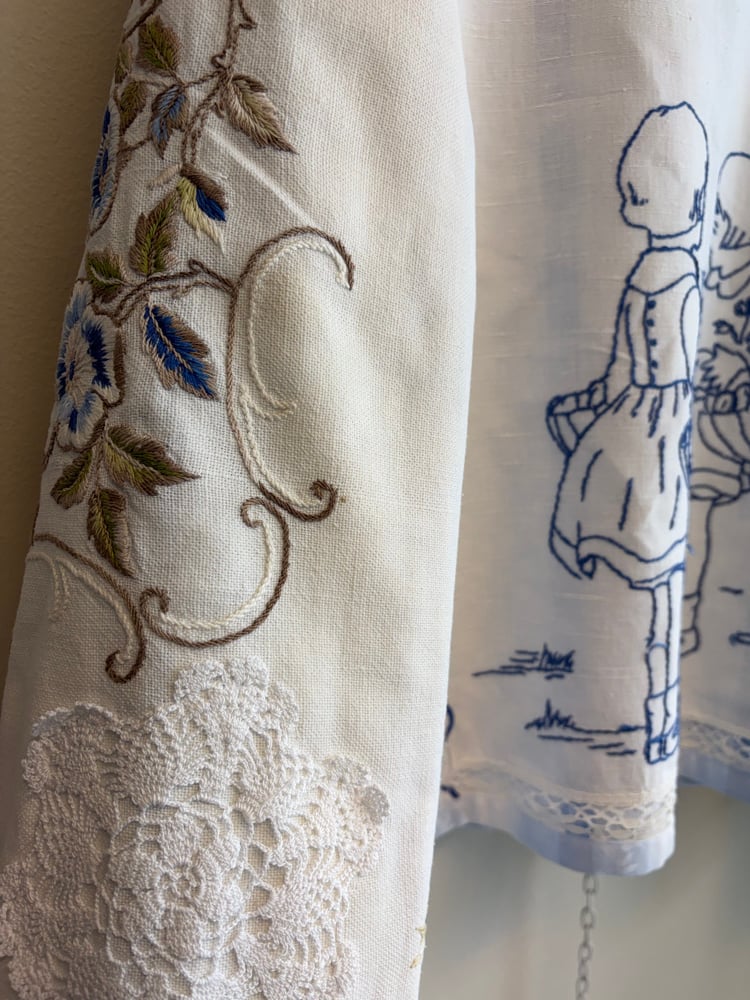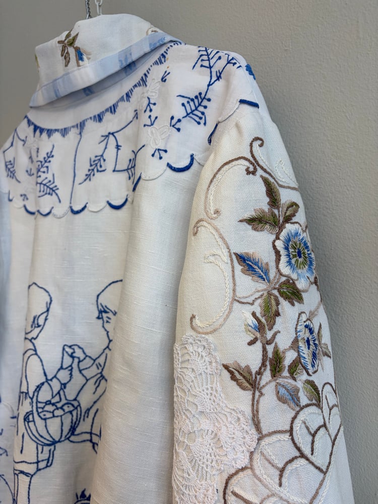 All needle points and embroideries have been test washed, so the jacket can be mashine washed on delicate program or hand washed.