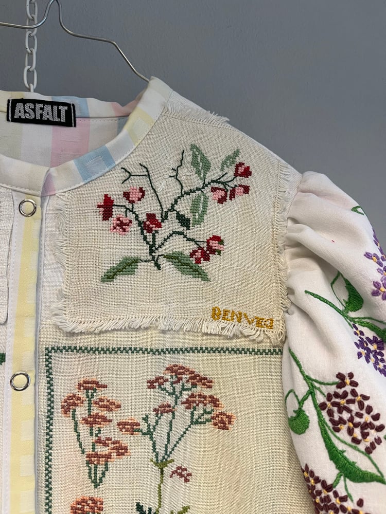 Alle broderierne er test vasket, så jakken kan vaskes på skånevask i maskinen.