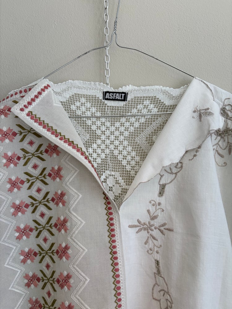 This one is made with beautiful flower embroidered center piece and white crocheted pieces.