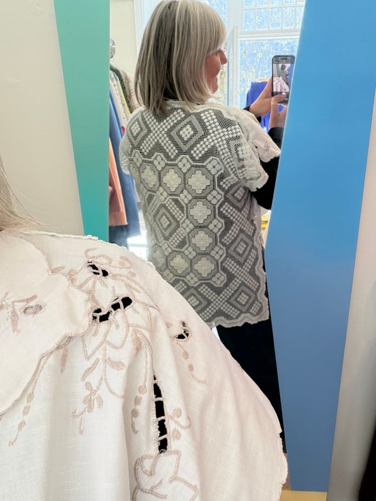 Daisy top is using the beautiful pieces of fabric, embroidery and crochet as they are.