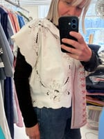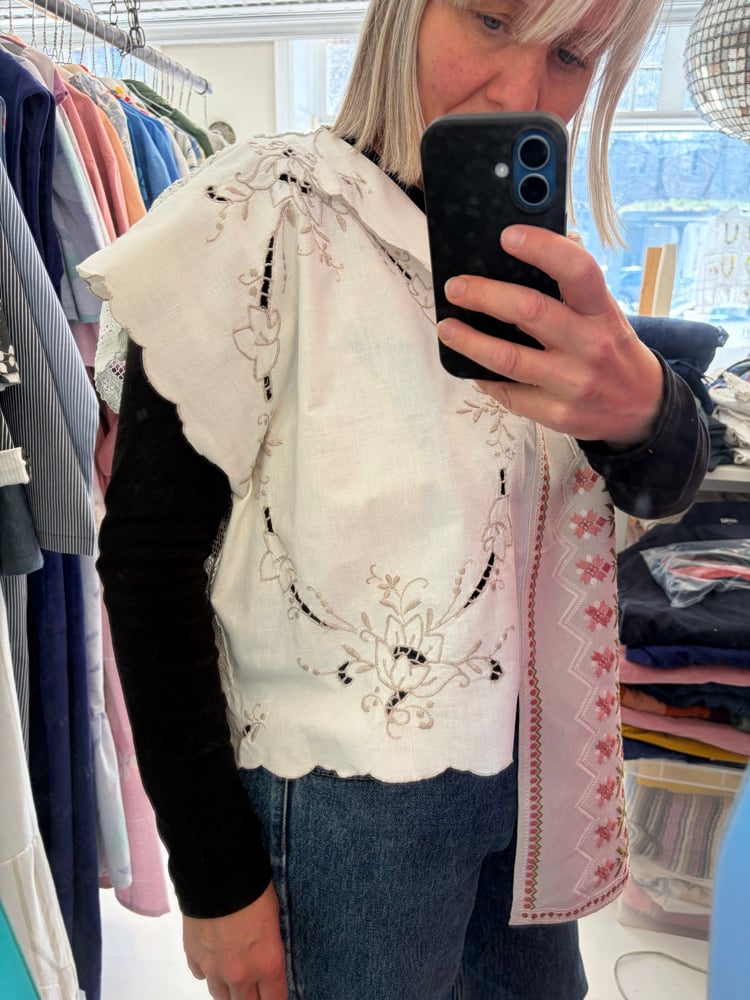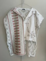 Daisy toppen er syet af smukke genbrugsstoffer uden at klippe noget væk. Bruge de fine hæklerier, broderier og vævede stofstykker som de er.