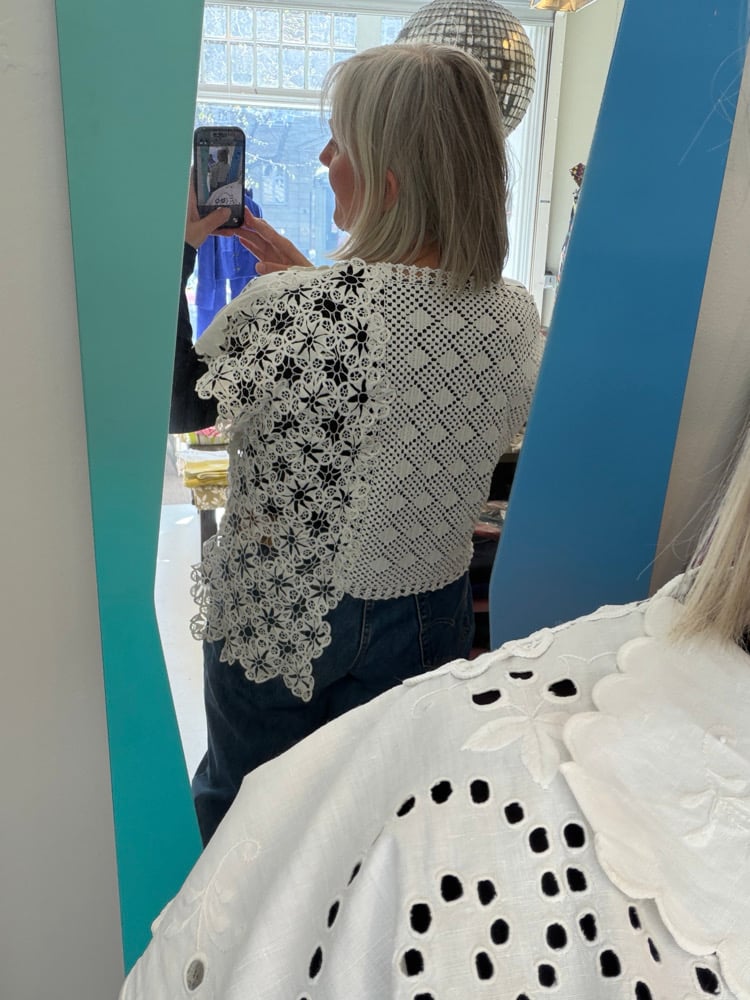 Daisy top is using the beautiful pieces of fabric, embroidery and crochet as they are.