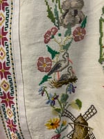 A gathering of amazing embroideries and needle point.