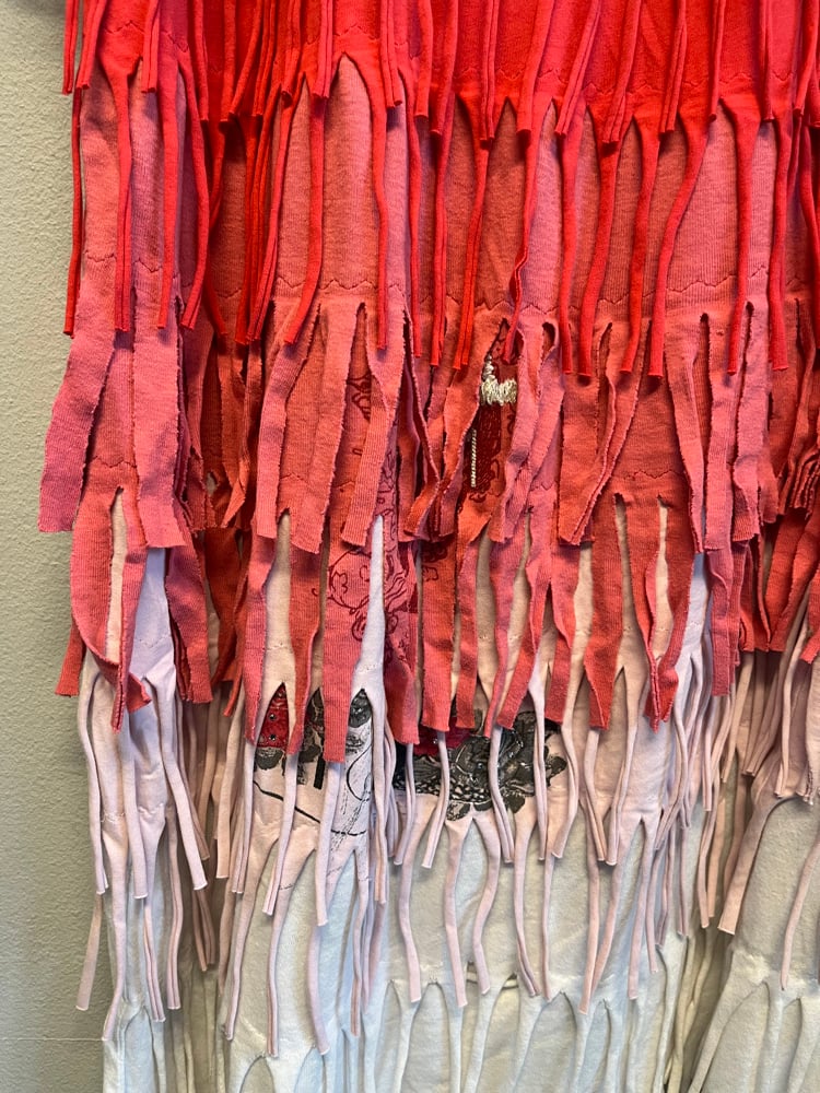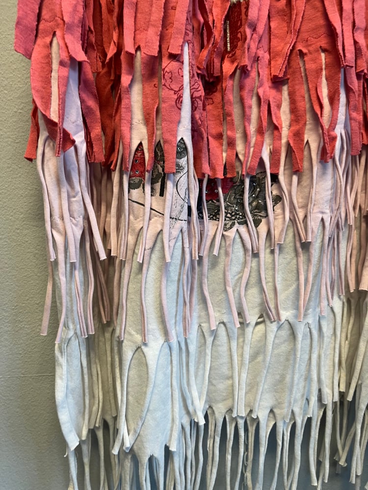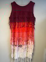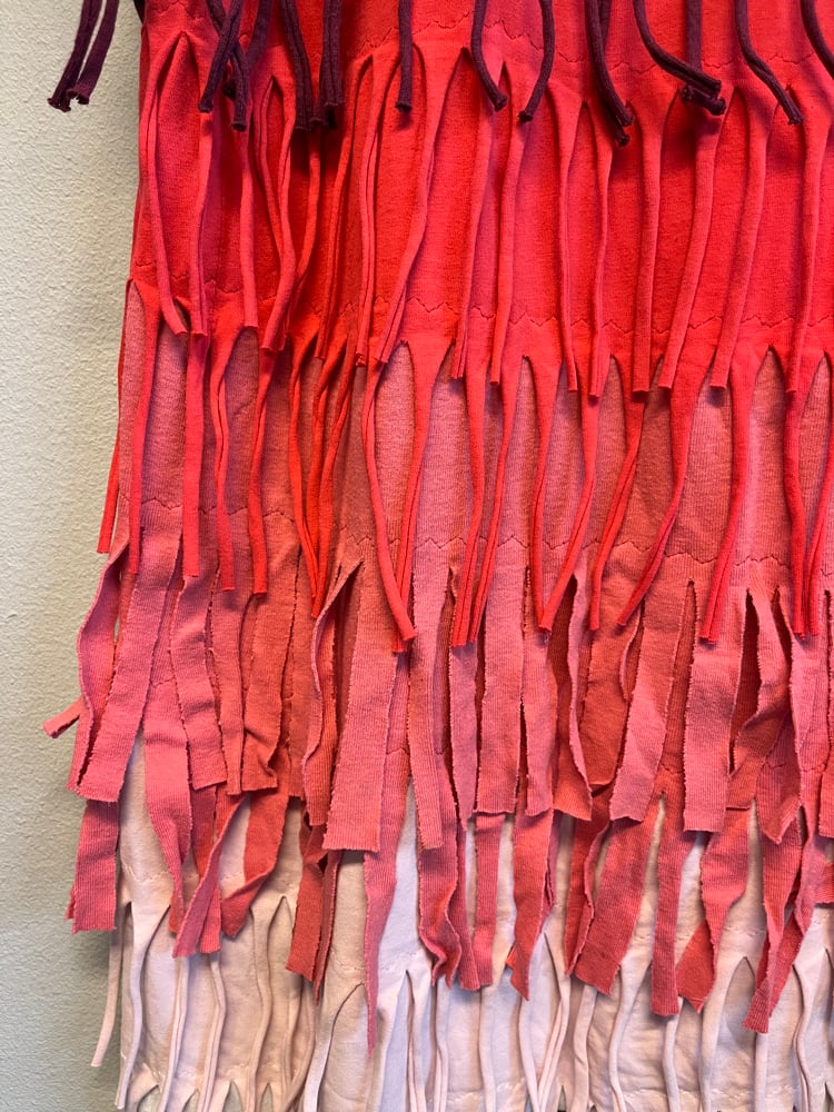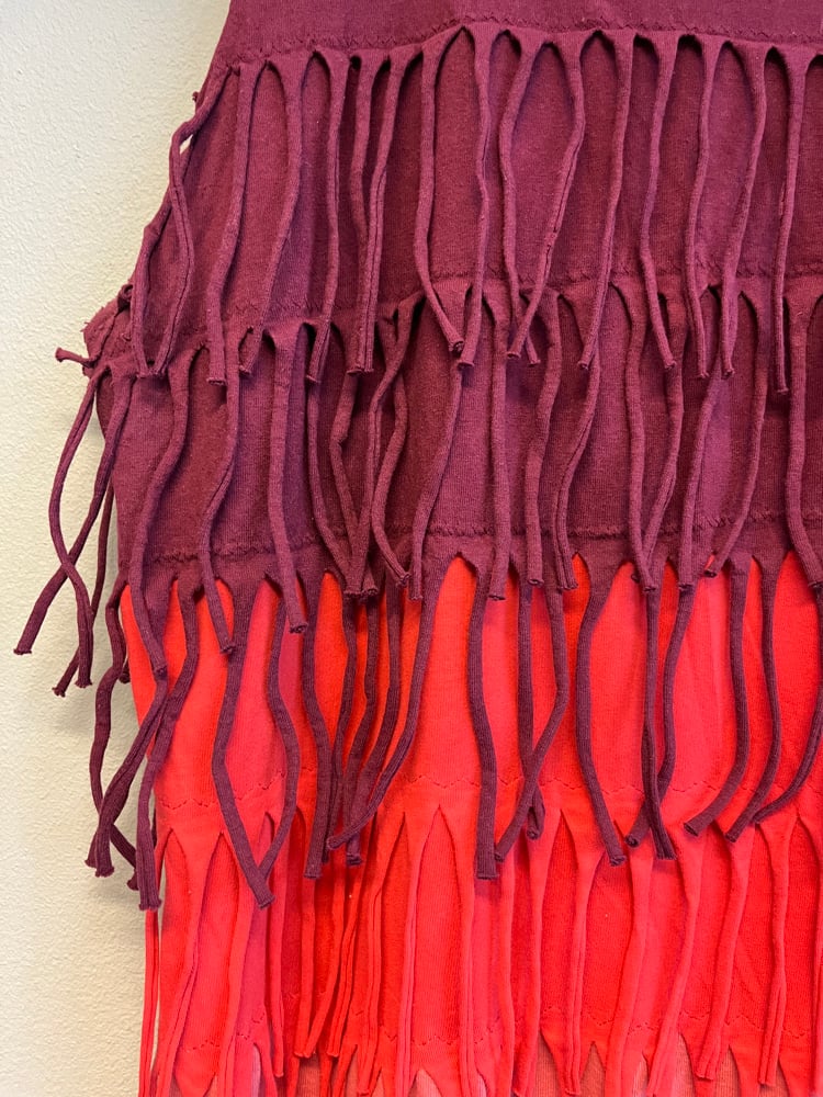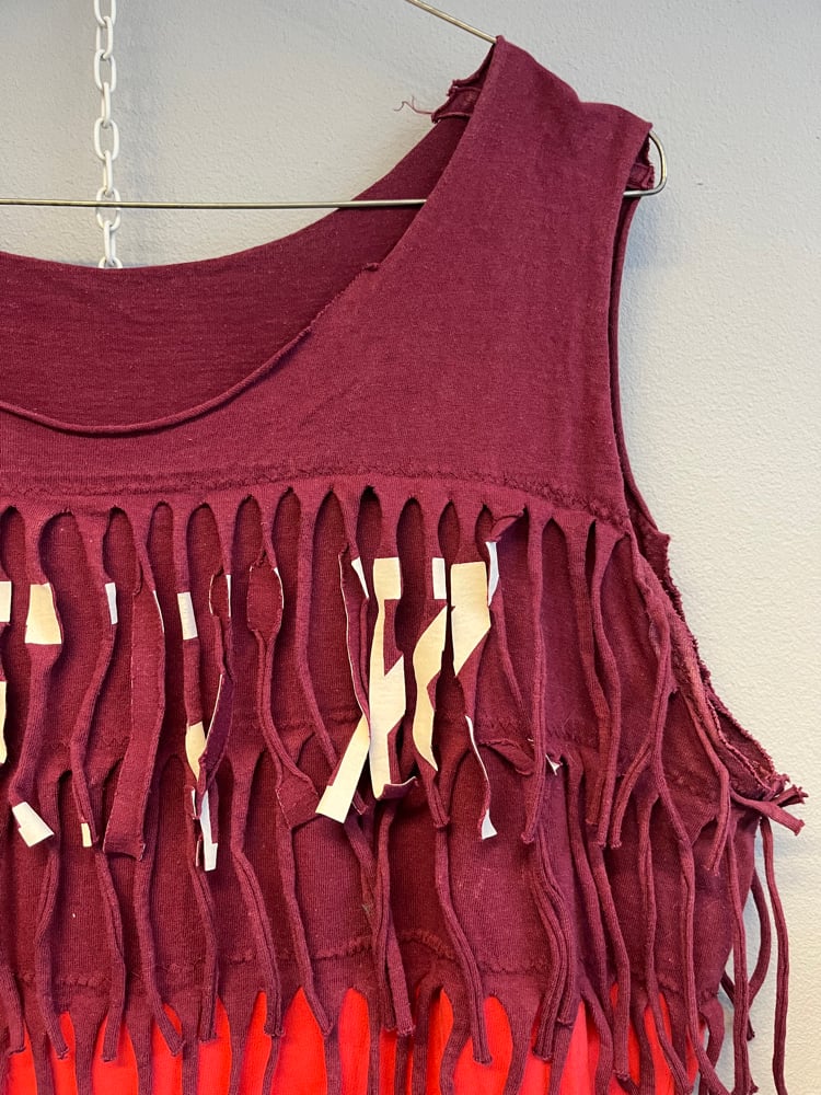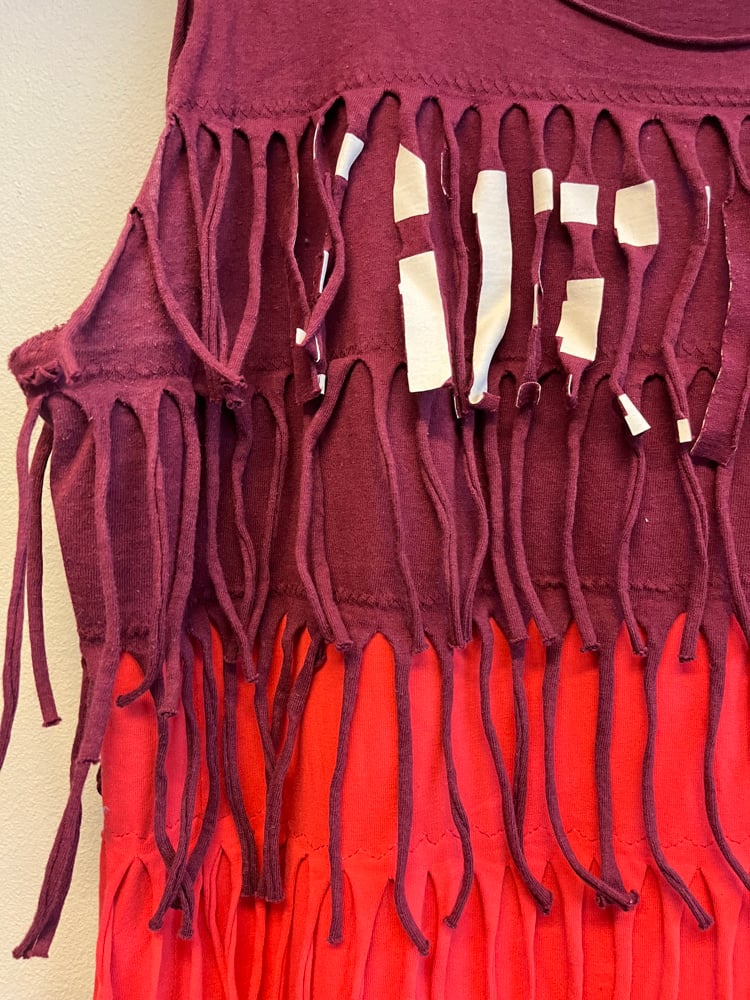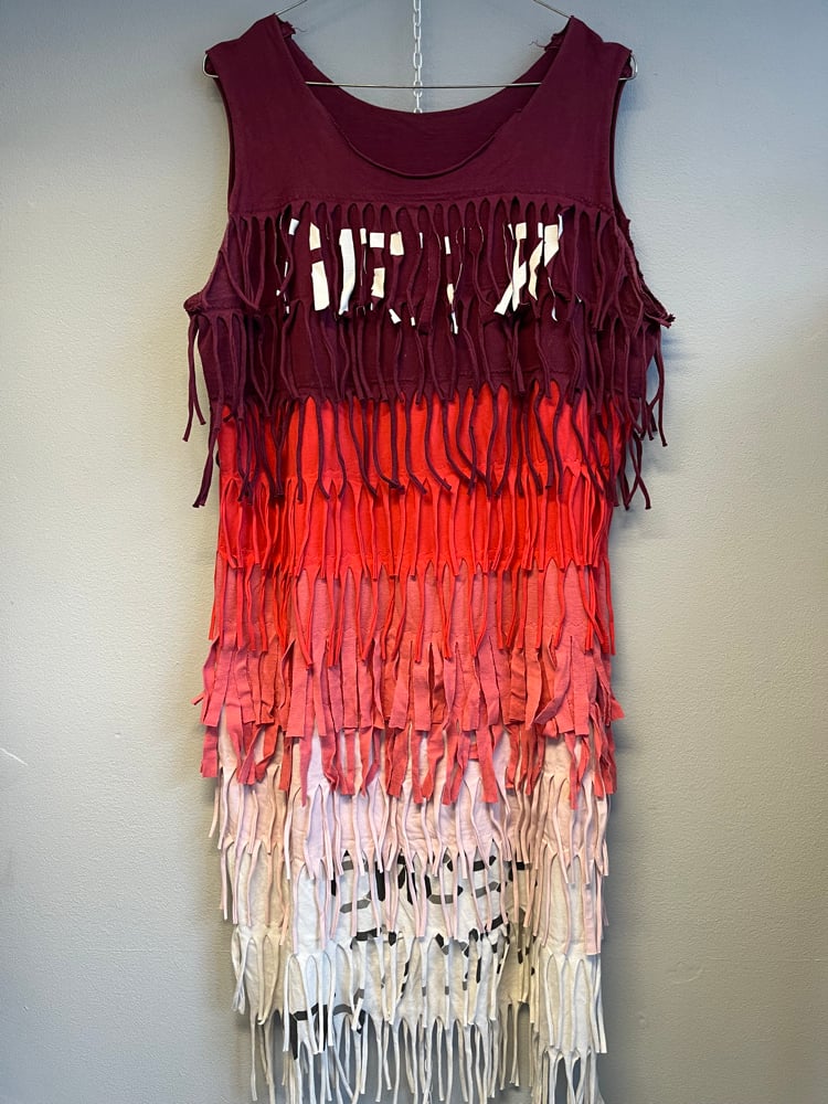 Frynsekjole klippet og syet i genbrugs t-shirts. Bomulds Jersey, så med lidt stræk.