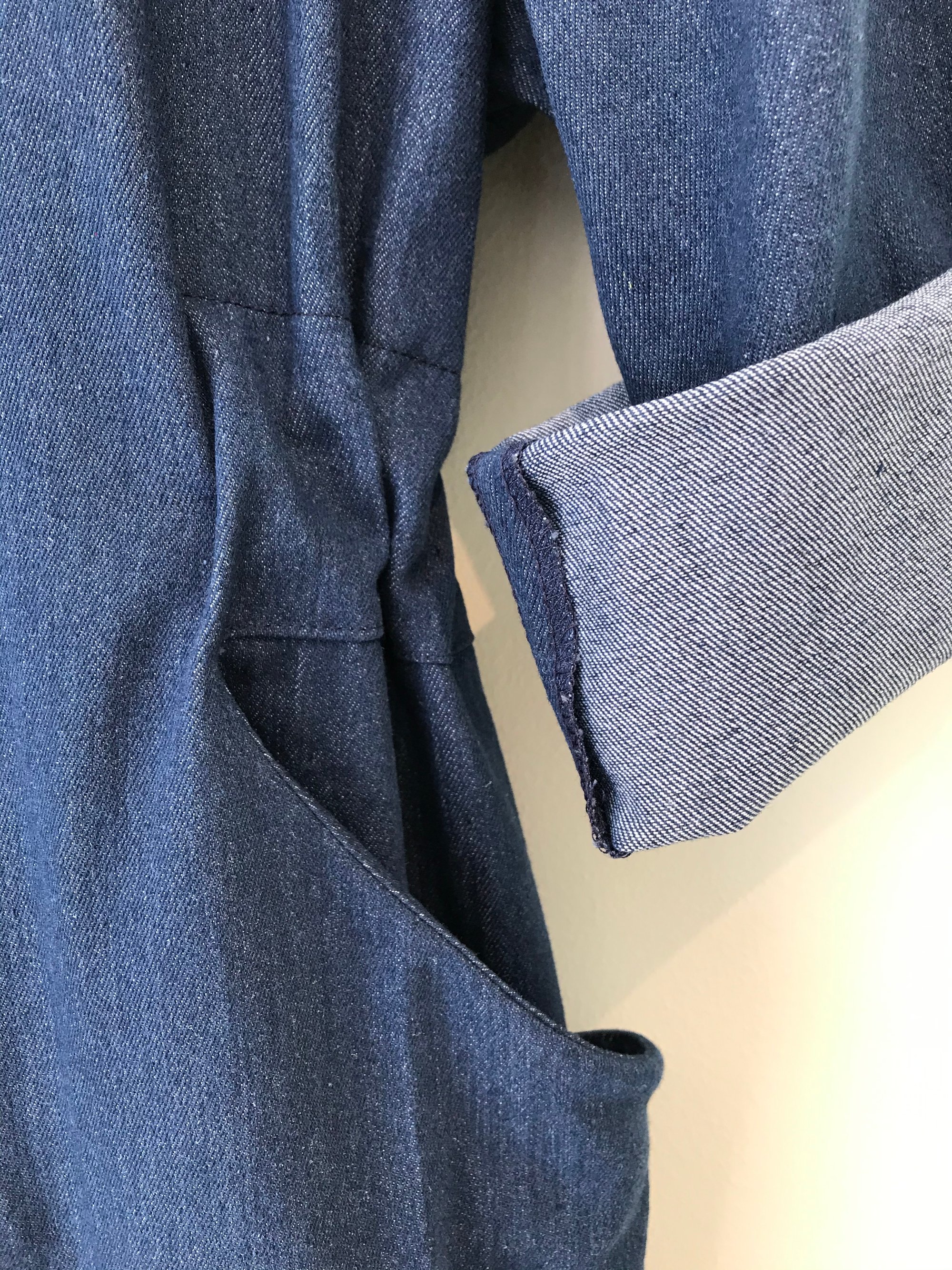The jumpsuit is made in ecotex standard jeans (97% cotton, 3% elasthan).
