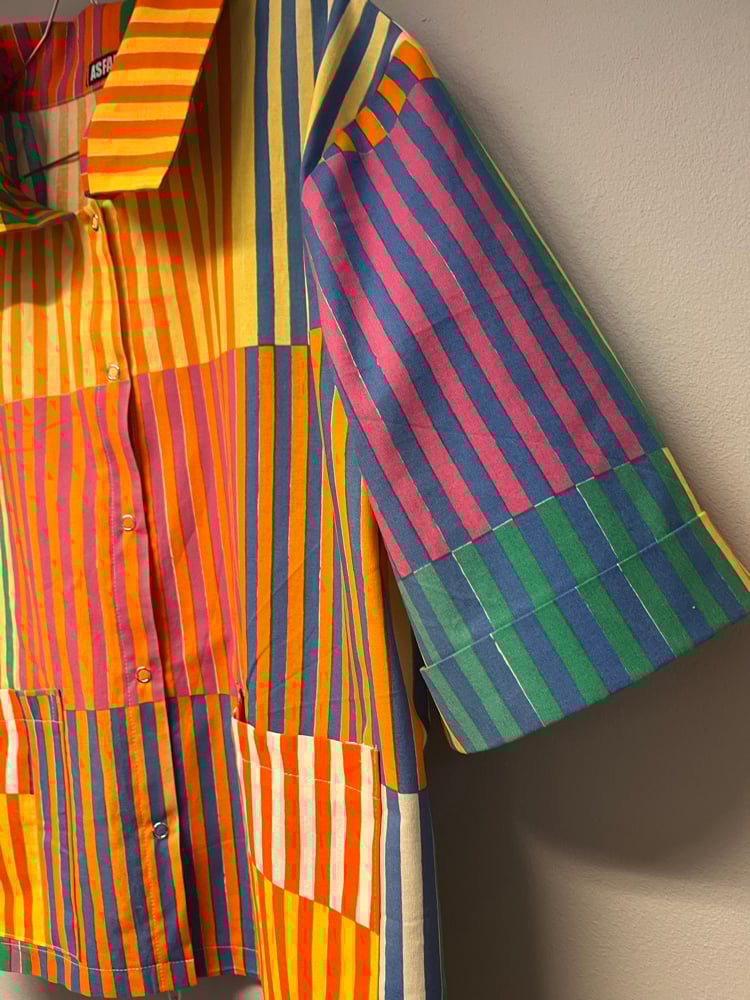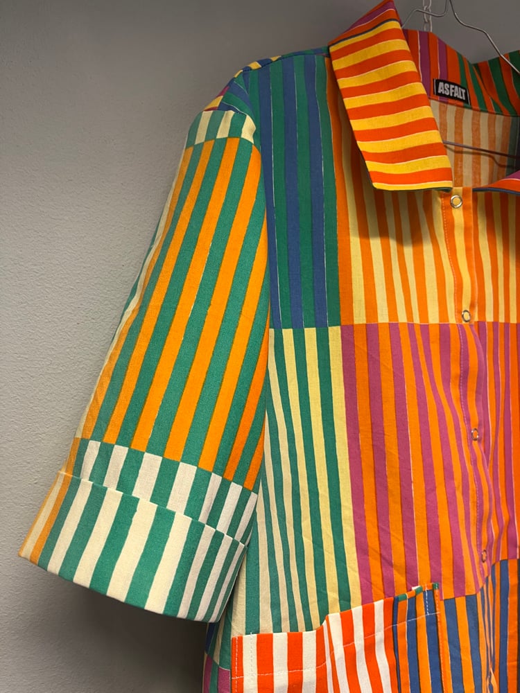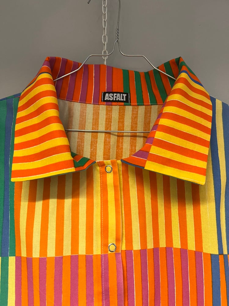 Skjorte syet af smukt Marimekko stof, designet af Fujiwo Ishimoto.