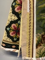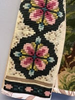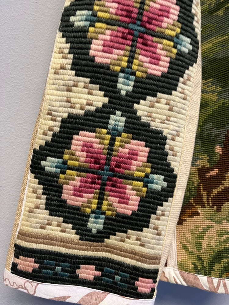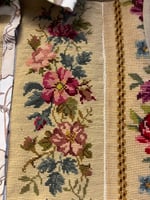 In front some very long bell pulls with flowers. Sleeves are also beautiful embroidered flowers.