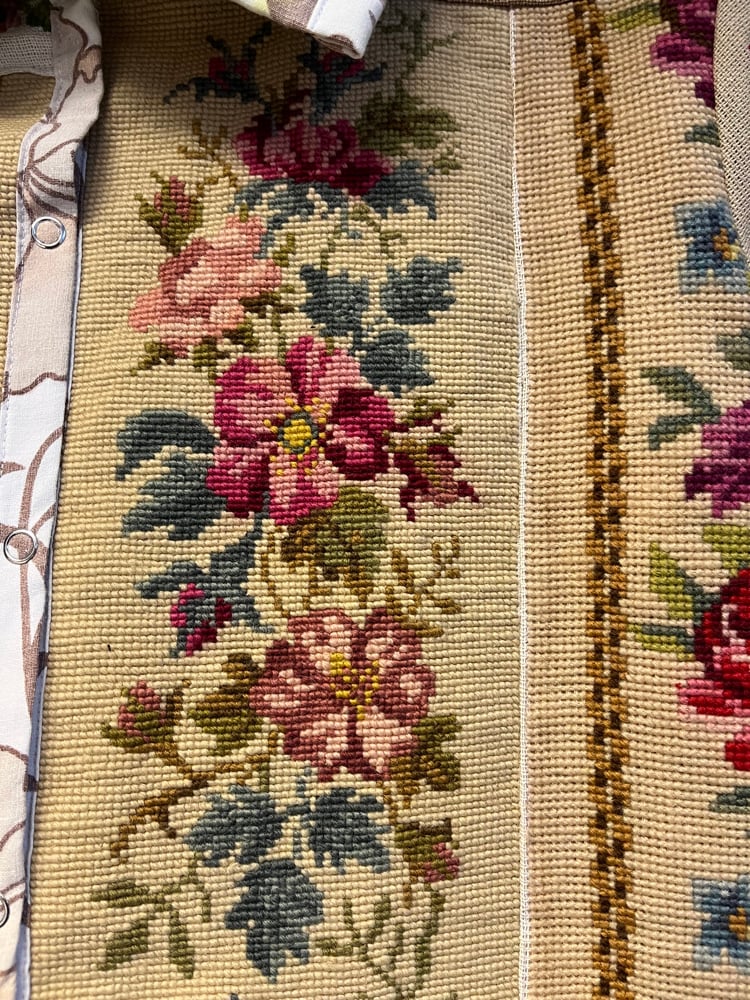 On this jacket there is a stunning embroidery piece on the back with herb plants 🪴