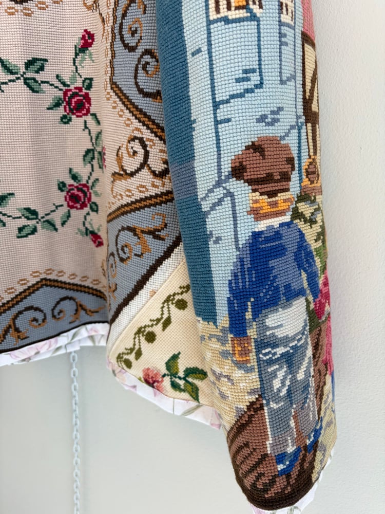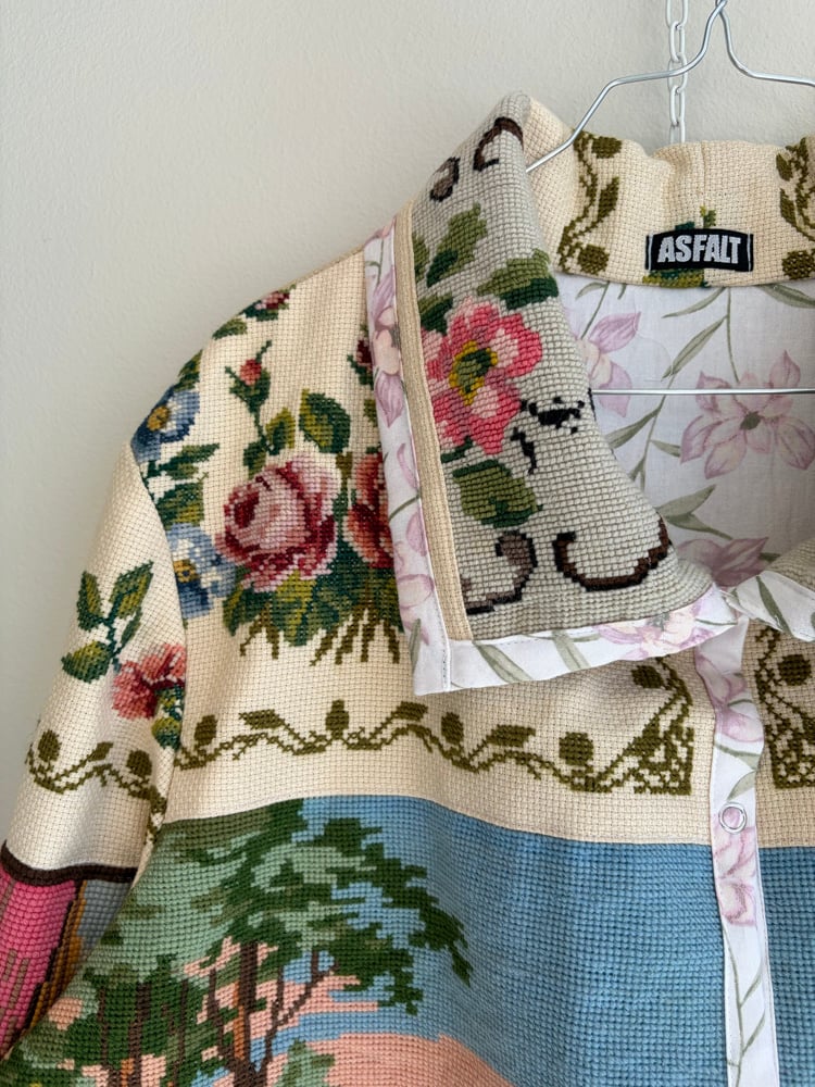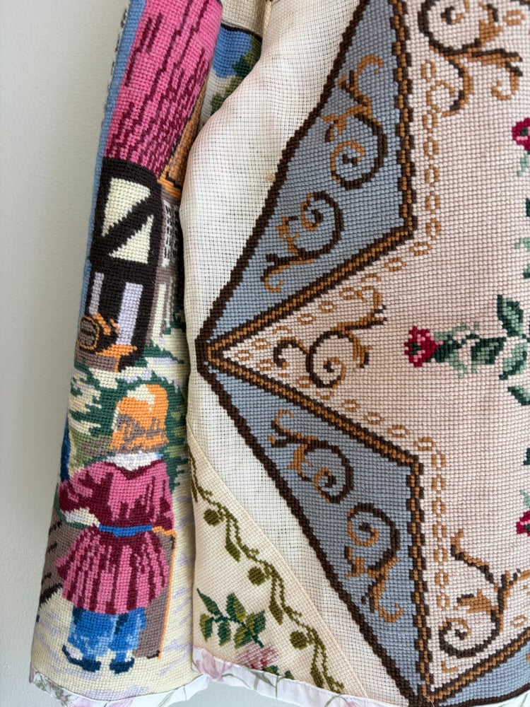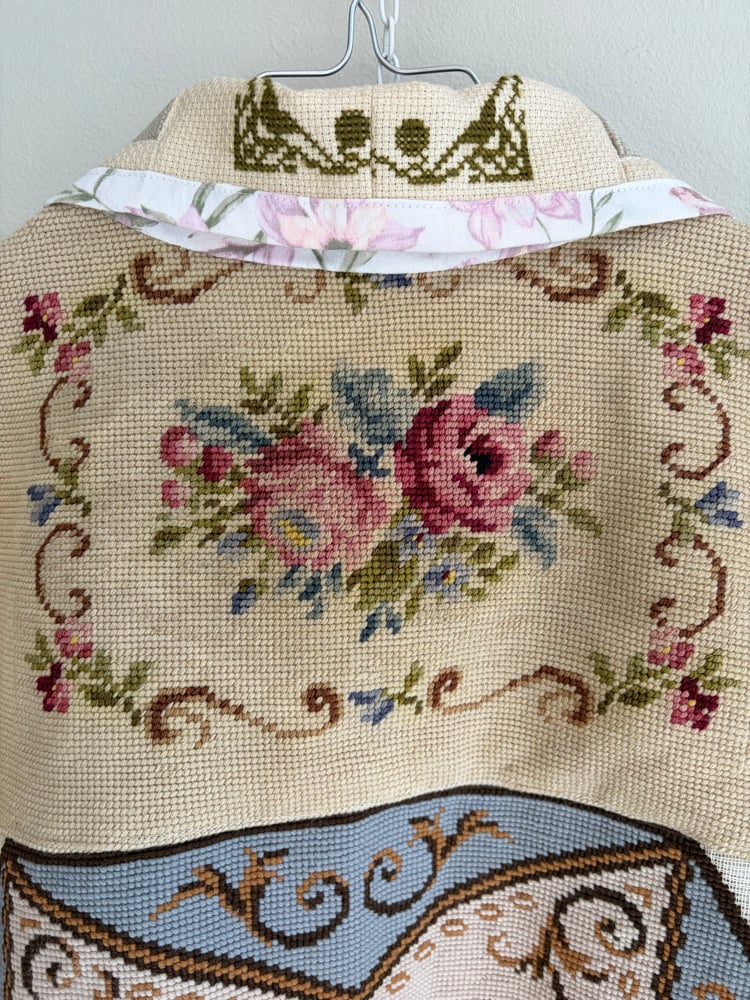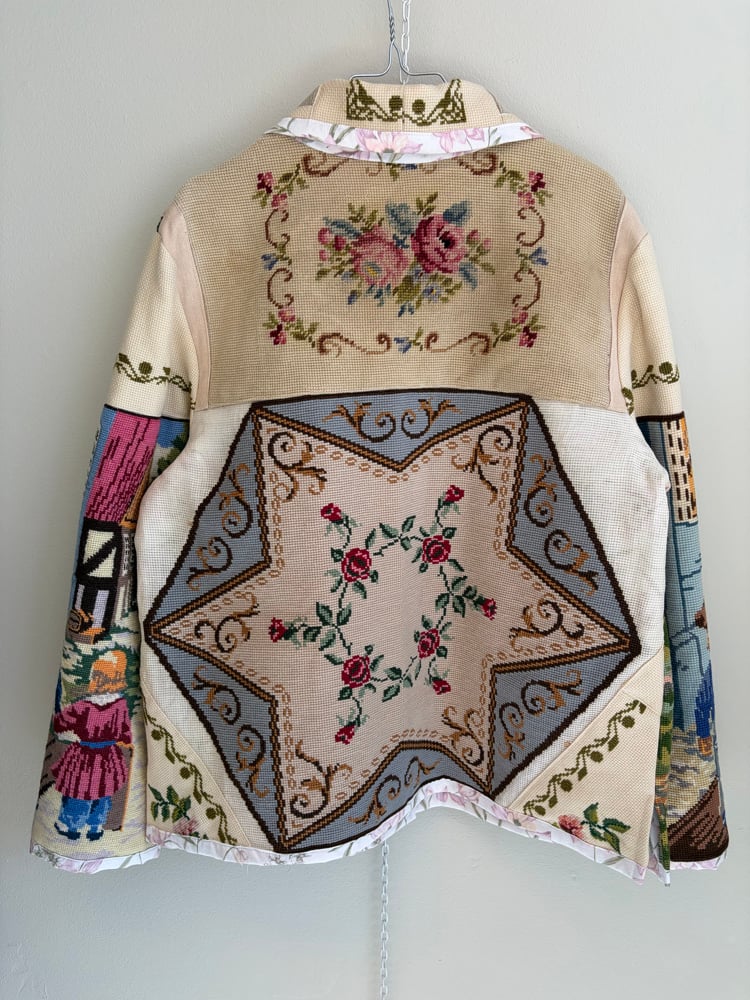 All needle points and embroideries have been test washed, so the jacket can be mashine washed on delicate program or hand washed.