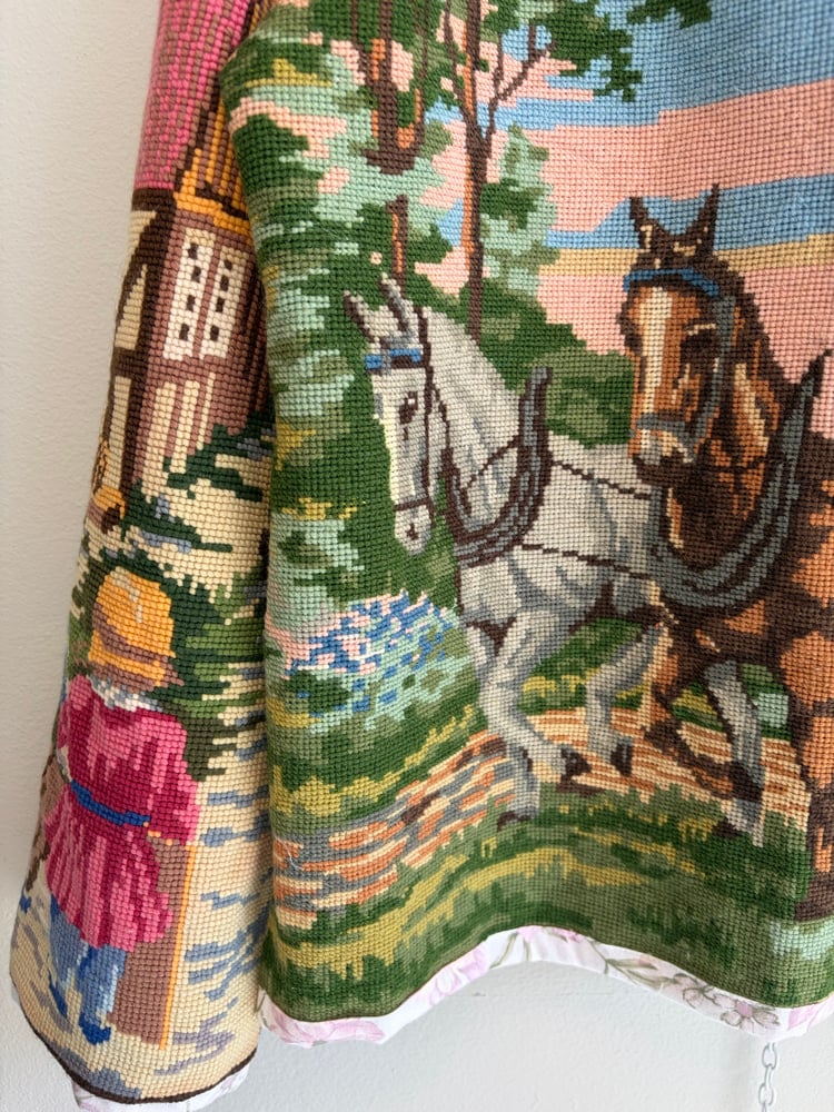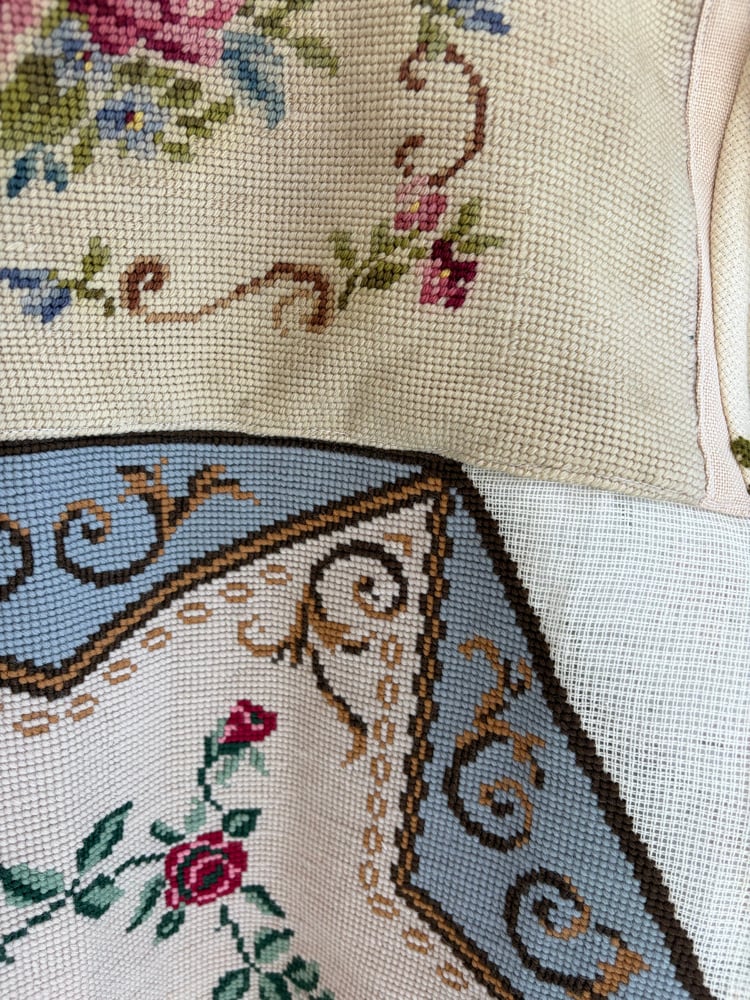 A gathering of amazing embroideries and needle point.