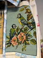 On this jacket there are cats guarding the frontdoor along beautiful birds on the front.