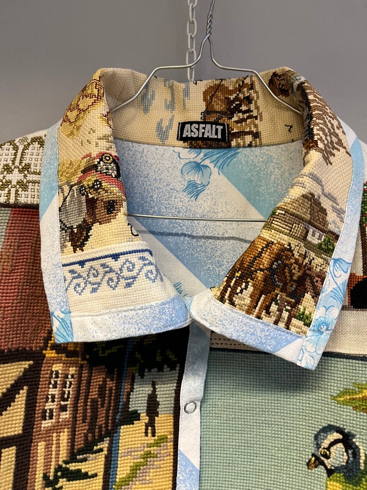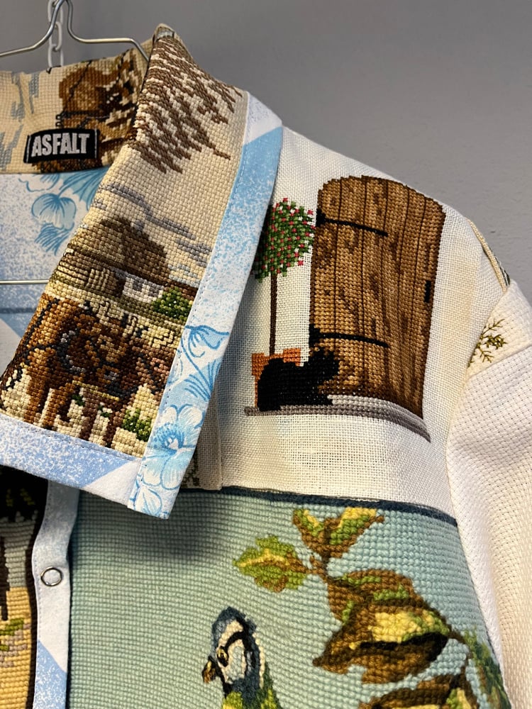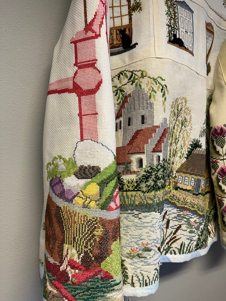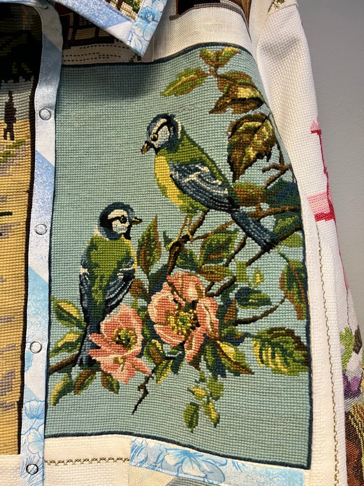 På denne jakke er rådyr broderiet fra et stort vægophæng.