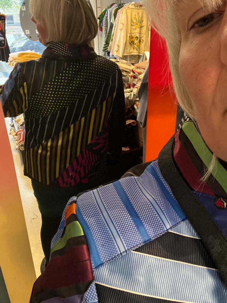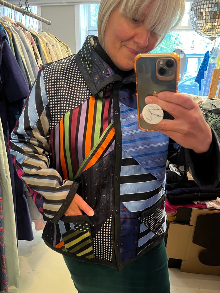 The jacket has a straight up and down cut, so can be used by men as well ⚧️
