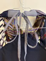 The ties are stitched onto a piece of jersey so the front is closed (no nipple slip).