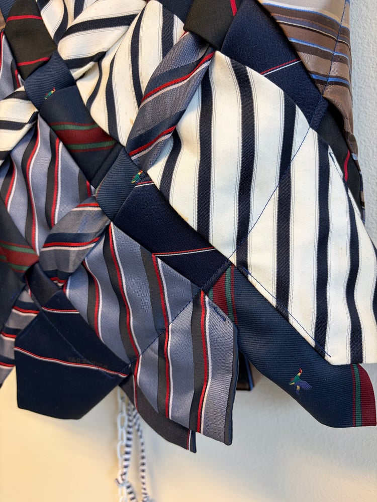 Slipsene er silke, polyester og satin. Jersey er bomuld.